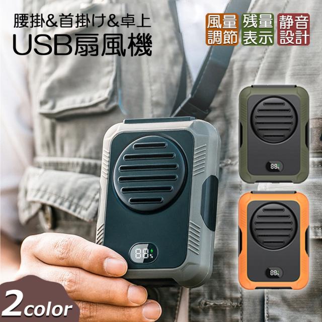 扇風機 腰掛けファン 首掛けファン ポータブル扇風機 卓上 小型 ベルトファン 腰掛け扇風機 携帯扇風機 三段階風量 LED残電表示 強力 静音 耐衝撃 usb充電式 通勤通学 スポーツ 熱中症対策 省エネ