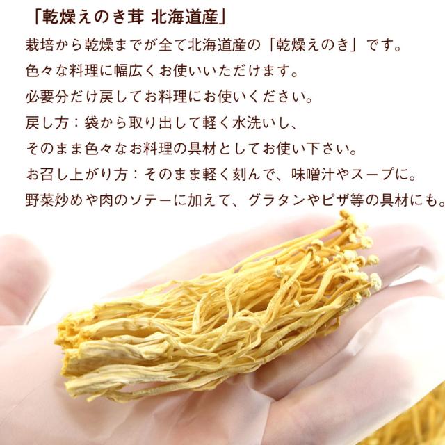 栽培から乾燥までが全て北海道産の「乾燥えのき」です。