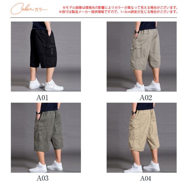 【水曜日まで!10%クーポン配布中】 ハーフパンツ カーゴパンツ メンズ ショートパンツ 7分丈 短パン ゆったり ワイドパンツ 半ズボン 大きいサイズ ゆったり カジ