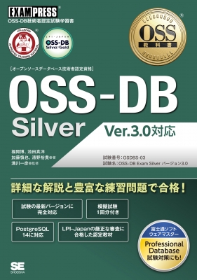 目次 : 第1部 一般知識(オープンソースデータベースの一般的特徴/ データベースの基礎知識)/ 第2部 運用管理(インストール/ 標準付属ツール/ 設定ファイル/ バックアップとリストア/ 基本的な運用管理)/ 第3部 開発・SQL(SQLとオブジェクト/ 組み込み関数と演算子/ トランザクション)/ 第4部 模擬試験(OSS‐DB Exam Silver模擬試験)
