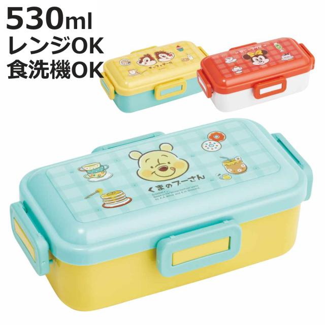 お弁当箱 抗菌ふわっと弁当箱 1段 530ml 喫茶レトロシリーズ ( ディズニー ミニー プーさん チップとデール 抗菌 弁当箱 ランチボックス 一段 ドーム型 4点ロック 仕切り付き 食洗機対応 レンジ対応 銀 AG 日本製 )