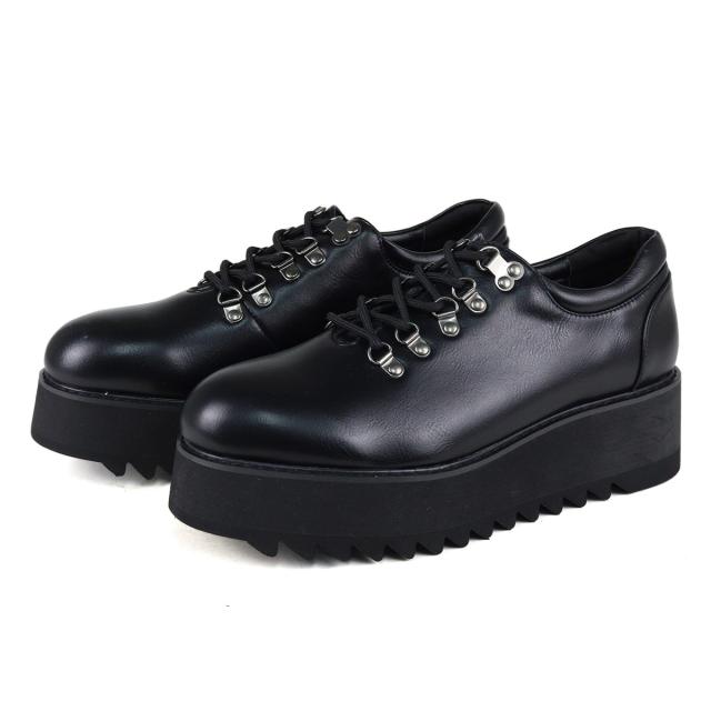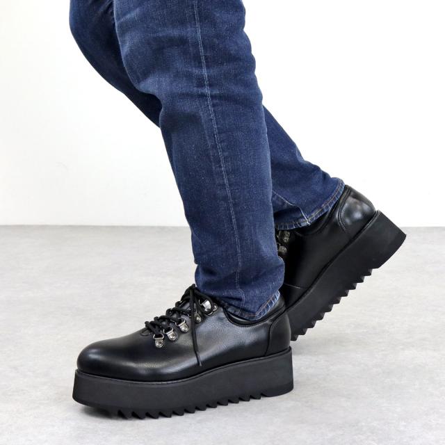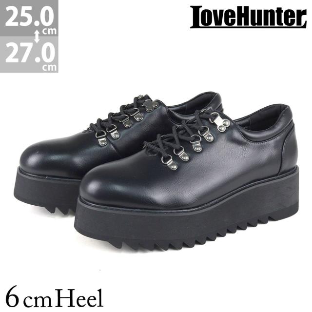 マウンテンシューズ メンズ カジュアル 紐靴 厚底 6cmヒール 防滑 シャークソール 3E 合皮 PUレザー 身長アップ No.1734 25cm-27cm 黒 ラブハンター
