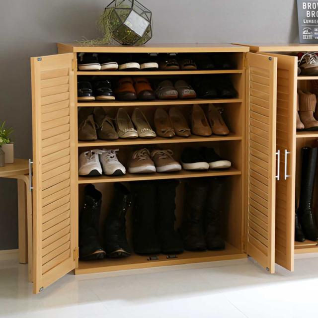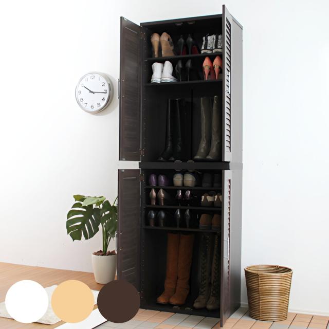 ルーバー扉 シューズボックス 幅75cm 最大28足収納可能 木製 ( 靴 収納 下駄箱 玄関 玄関収納 シューズ ラック 靴収納 スニーカー ブーツ 収納ラック 通気性 シンプル おしゃれ )