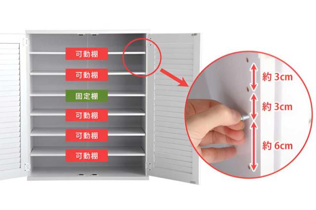 扉はルーバー仕様にすることで、湿気やニオイもこもらず通気性抜群です。大切な靴や、来シーズンに使うときまで気持ち良く保管することができます。オープンタイプとは違い、扉があるので見た目もスッキリします。