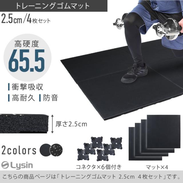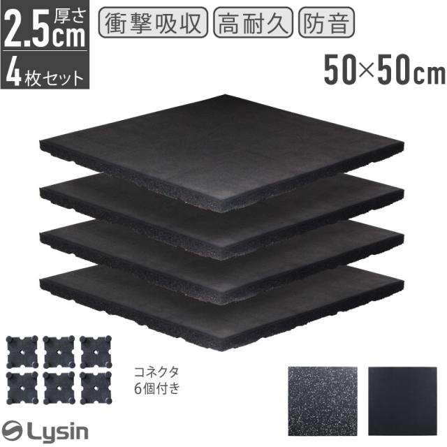 ライシン ゴムマット 厚さ 2.5cm 4枚セット コネクタ6個付き トレーニング ジム 衝撃吸収 防音