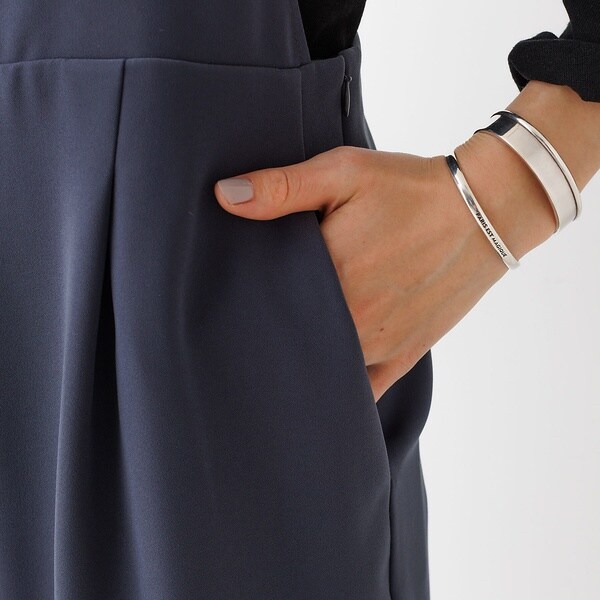 パンツのシルエットはややテーパードでスッキリとした印象に。