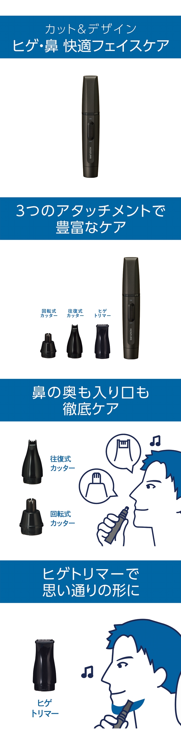 | 商品名 | コイズミ ヒゲ&ノーズケア KMC-0641/H JAN:4981747078063 | ||
