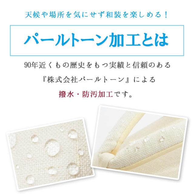 鼻緒と草履台に使用している生地は『パールトーン加工(撥水・防汚加工)』済み。