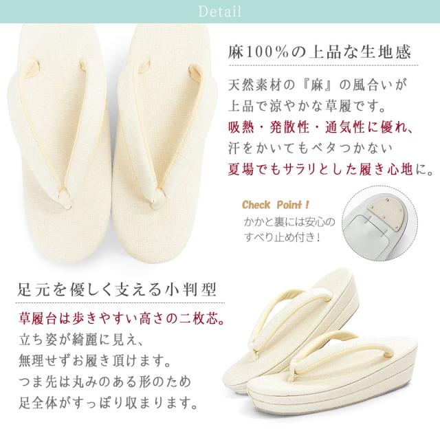 草履 レディース 麻100% パールトーン加工 撥水 夏 お洒落 街着 S M L LL 3L サイズ フリーサイズ 小さいサイズ 大きいサイズ 生成り キナリ ベージュ 和装 着物 普段着 小紋 単衣 夏着物 浴衣