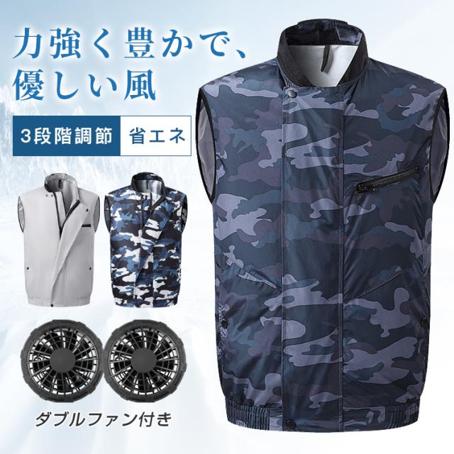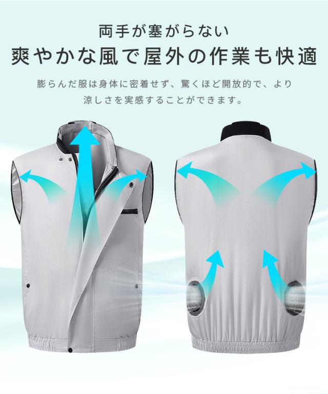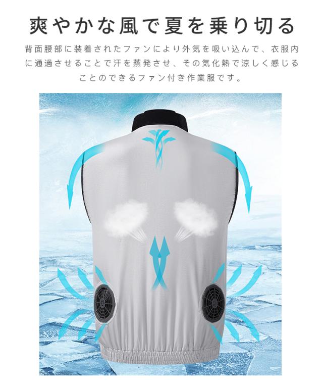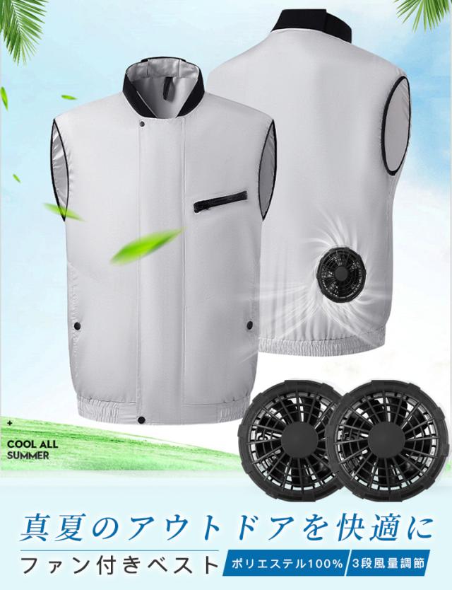 空調作業服 空調ウェア ファンセット ノースリーブ ベスト フルセット 冷却服 空調作業着 熱中症対策 空調扇風服 ワークウェア 3段風量調節 大風量 薄型 夏 UVカット 撥水加工 空調ベスト 屋外作業 釣り 登山用 高通気性 ファン 低騒音