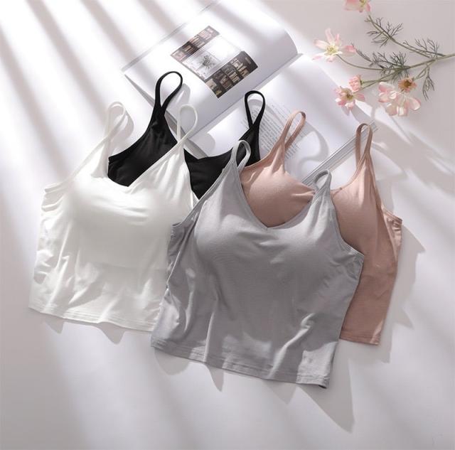 盛れるブラトップ スポーツブラ タンクトップ インナー ガーリー 見せるインナー フィットネス ヨガ スポーツ シームレス リブ レディース 韓国ファッション ハーフブラトップ