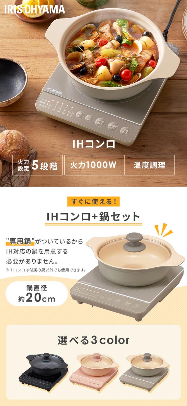 ihクッキングヒーター 卓上 小型 1口 鍋 セット ihコンロ ih 卓上ih 電気コンロ ミニ 電磁調理器 アイエイチコンロ 一人暮らし 新生活 アイリスオーヤマ IHKP-T39220 *
