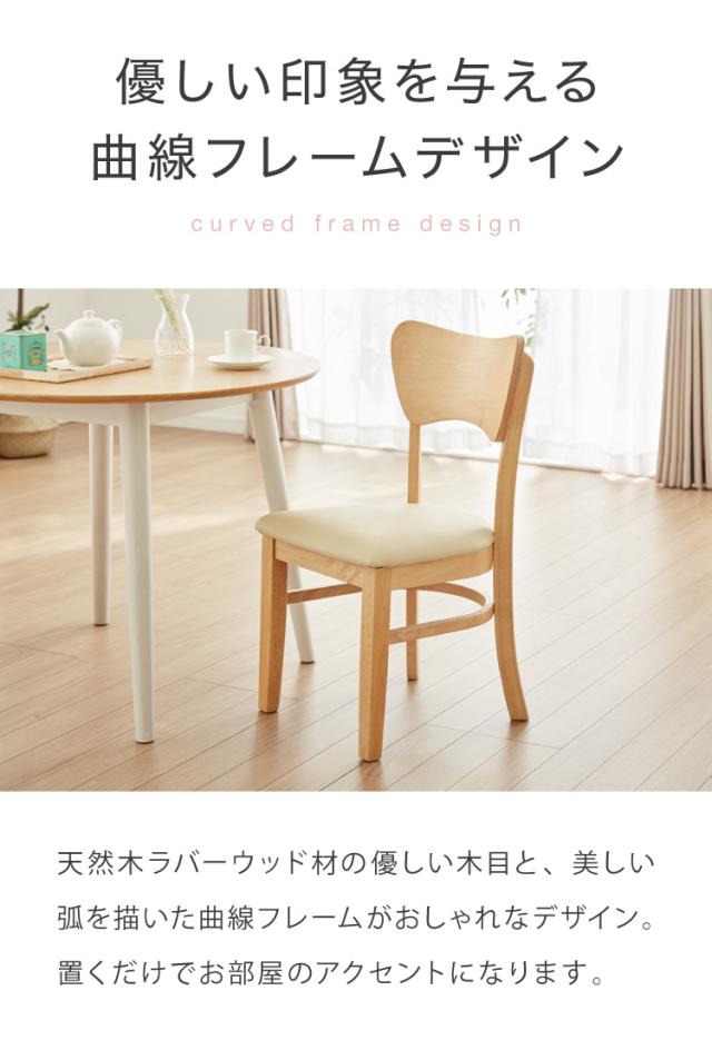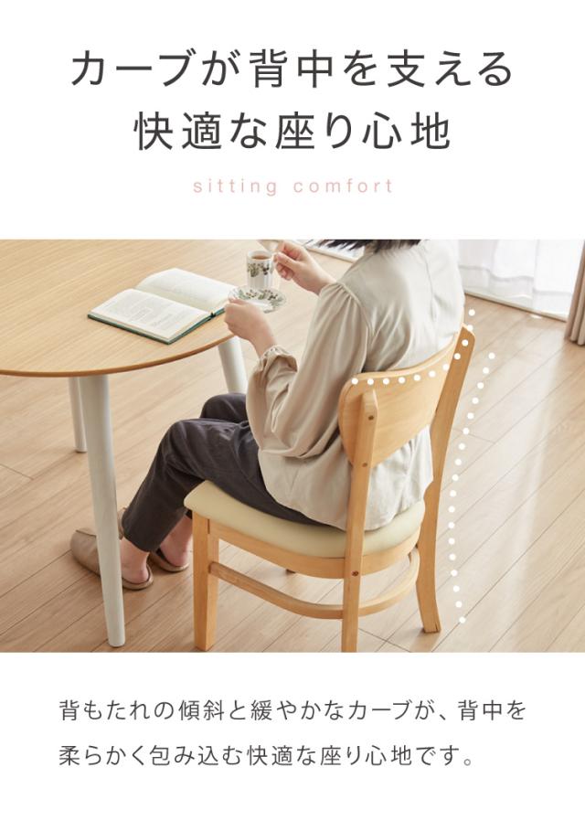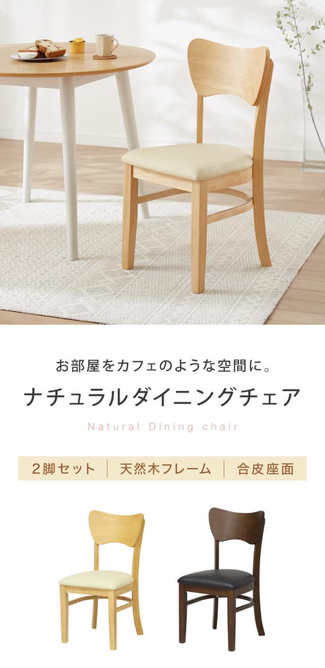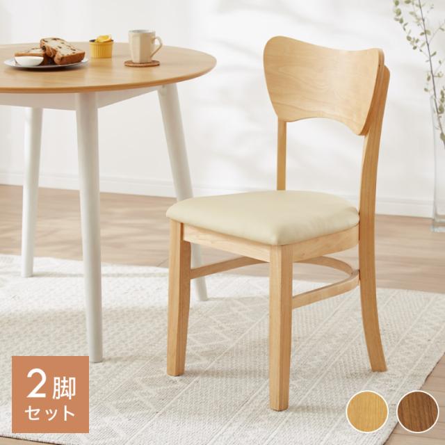 2脚セット ダイニングチェア 北欧 ナチュラル 椅子 イス チェア 2脚組 背もたれカーブ 曲線デザイン 合皮 肘なし 木製 シンプル おしゃれ(代引不可)【送料無料】