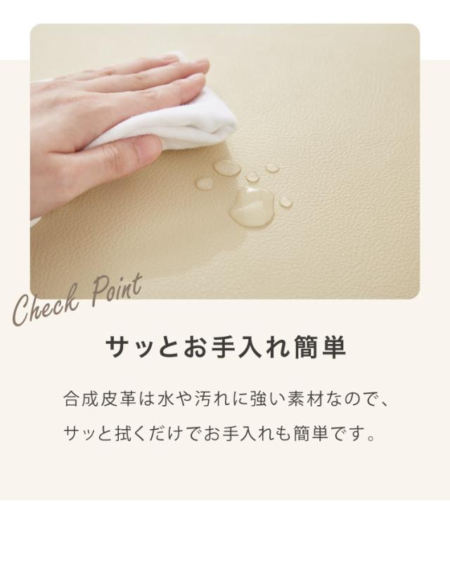 座面はお手入れが簡単な合成皮革。背もたれの傾斜と緩やかなカーブが背中を包み込みます。