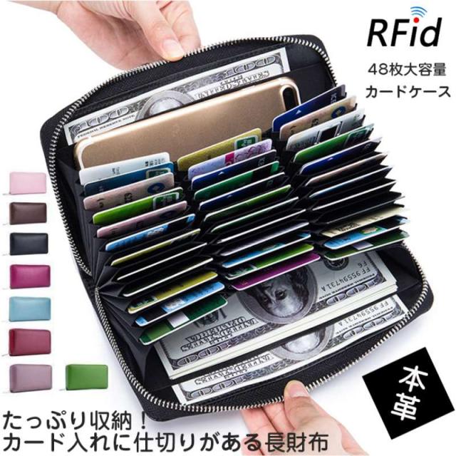 長財布 カードケース 本革 牛革 カード入れ 大容量 スキミング防止 小銭入れ じゃばら メンズ レディース カードホルダー ラウンドファスナー