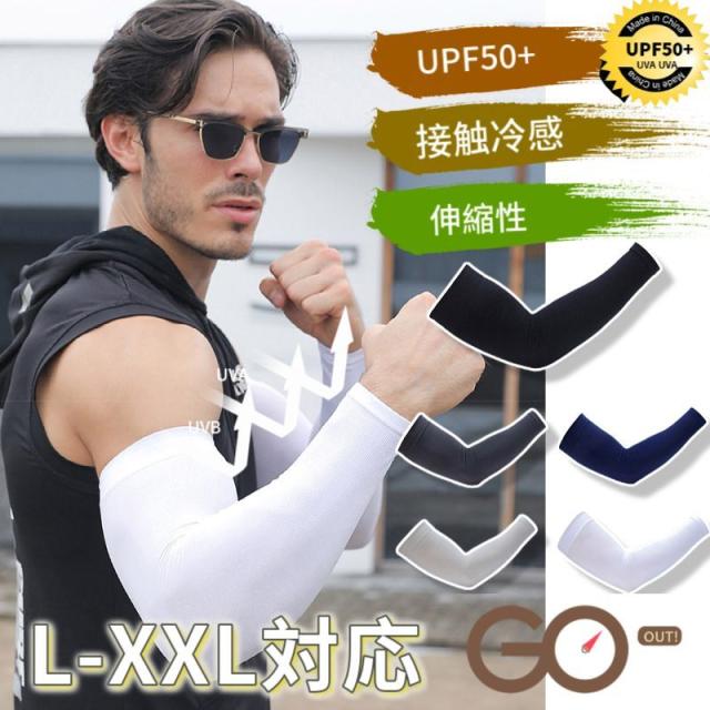 アームカバー UVカット 大きいサイズ 接触冷感 メンズ ロング スポーツ 日焼け対策 アウトドア 涼しい 運転 クール 速乾 釣り テニス ひんやり 無地L-XXL対応