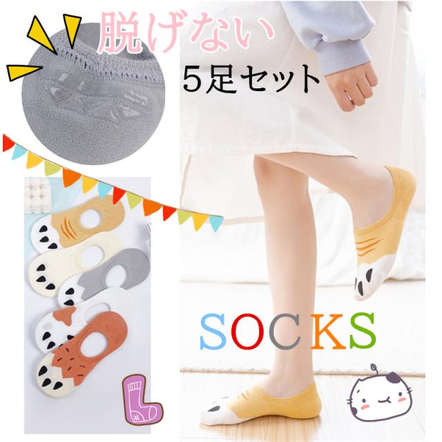 カワイイ猫柄デザインの靴下5足セットです。猫好きにはたまらないスニーカーソックス!全て猫のデザインで構成されています。