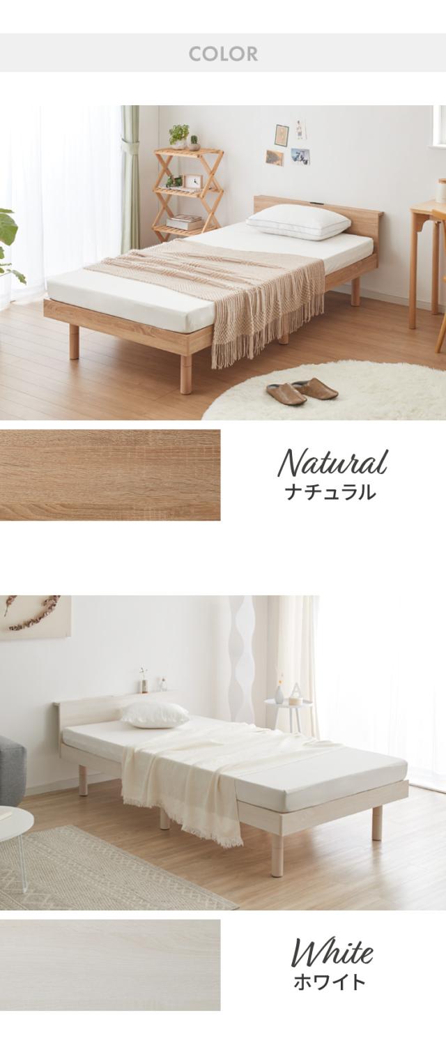 すのこベッド 高さ3段階調整 宮棚付き/バイカラー
