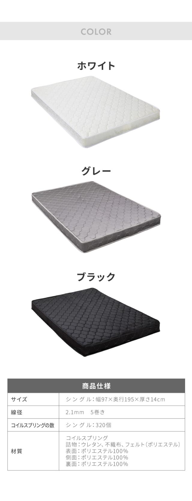 | ボンネルコイルマットレス付き シングル | ボンネルコイルマットレス付き セミダブル | ボンネルコイルマットレス付き ダブル |