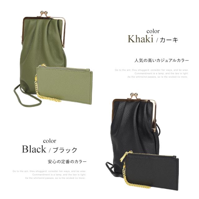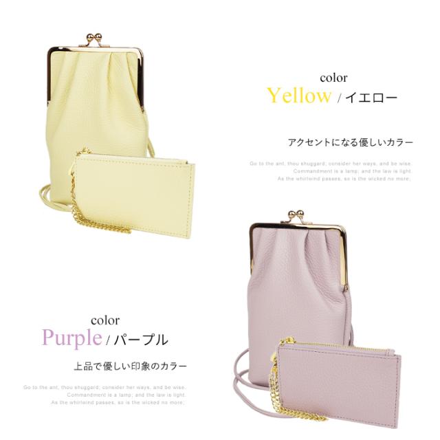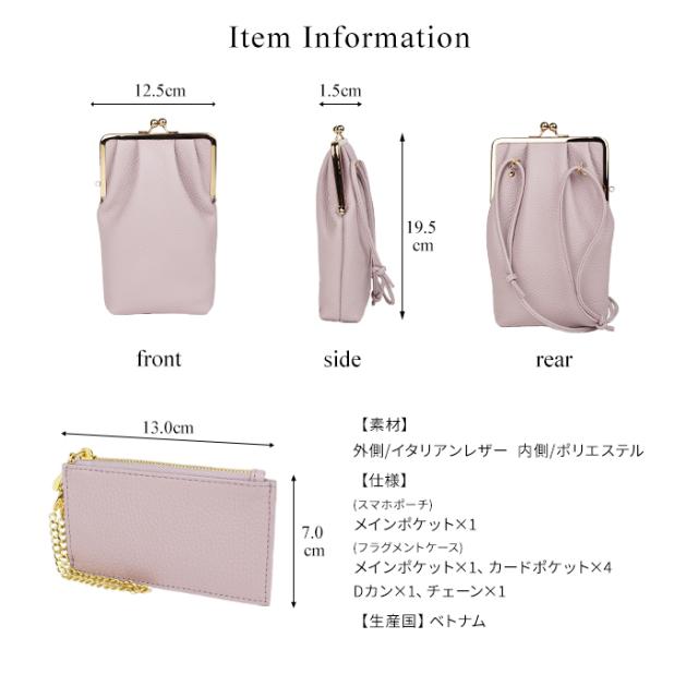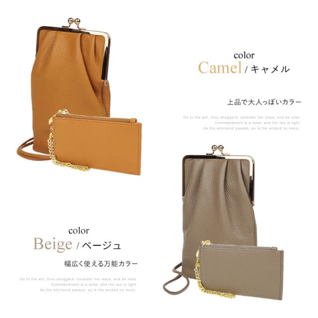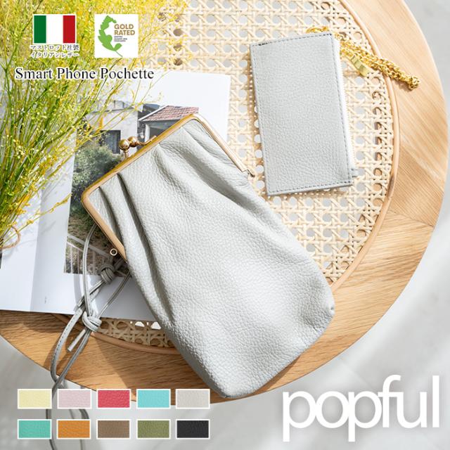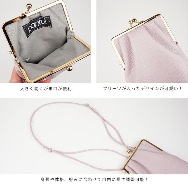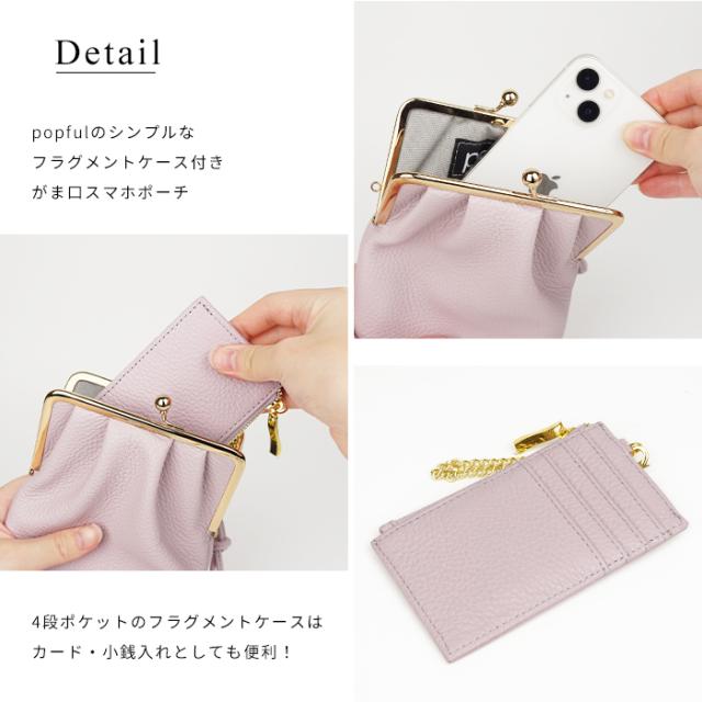 フラグメントケース付きがま口スマホショルダー スマホポシェット スマホポーチ 本革 イタリアンレザー popful 母の日 ラッピング ギフト プレゼント