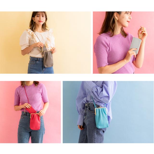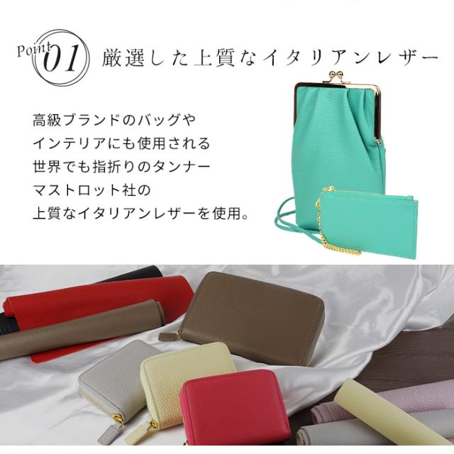 上質なイタリアンレザーを使用したカラフルなフラグメントケース付きがま口スマホポーチ。