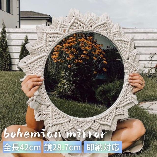 【在庫限り】 鏡 ミラー ボヘミアン 壁掛けミラー 42cm 高級 ホテル おしゃれ 壁掛けミラー おしゃれ デザインミラー シンプル オシャレ 姿見 全身鏡 モダン 北欧 インテリア 新築 リフォーム 美容 サロン 化粧鏡 女優ミラー キレイ ウォールミラー