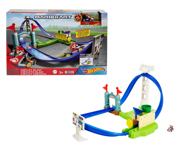 Hot Wheels マリオカート サーキットスラム トラックセットは、人気ゲーム「マリオカート」の世界を再現したレースコースです。