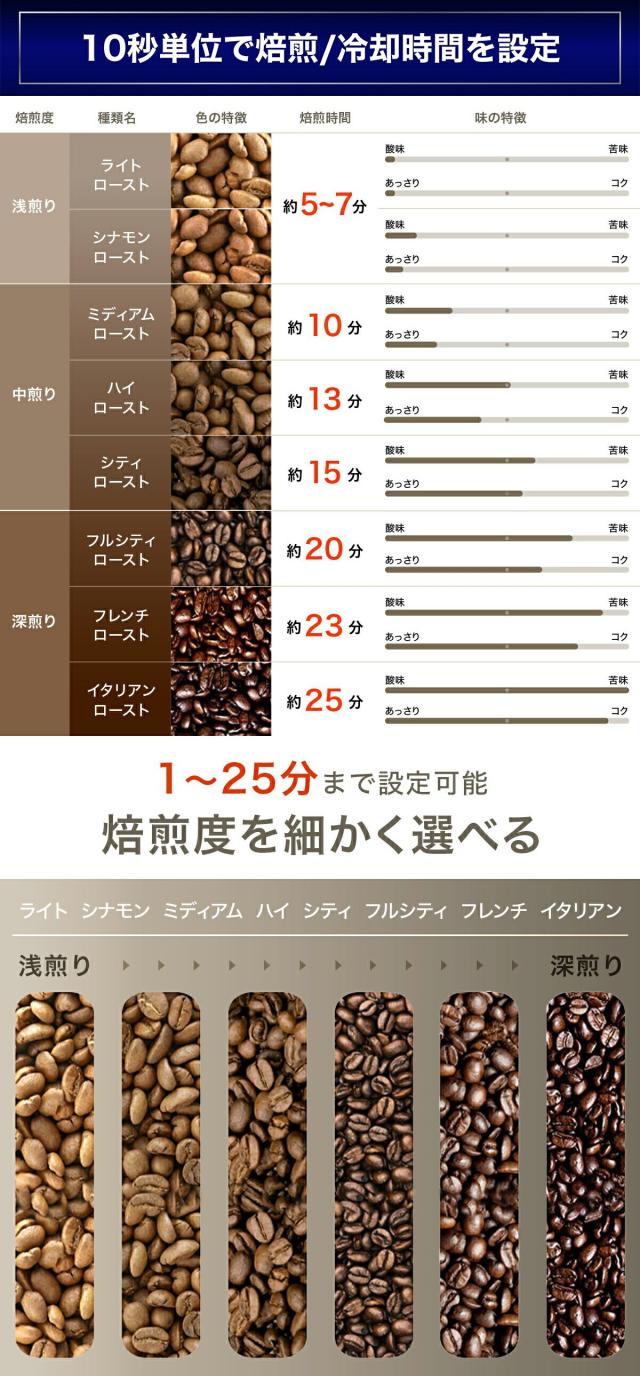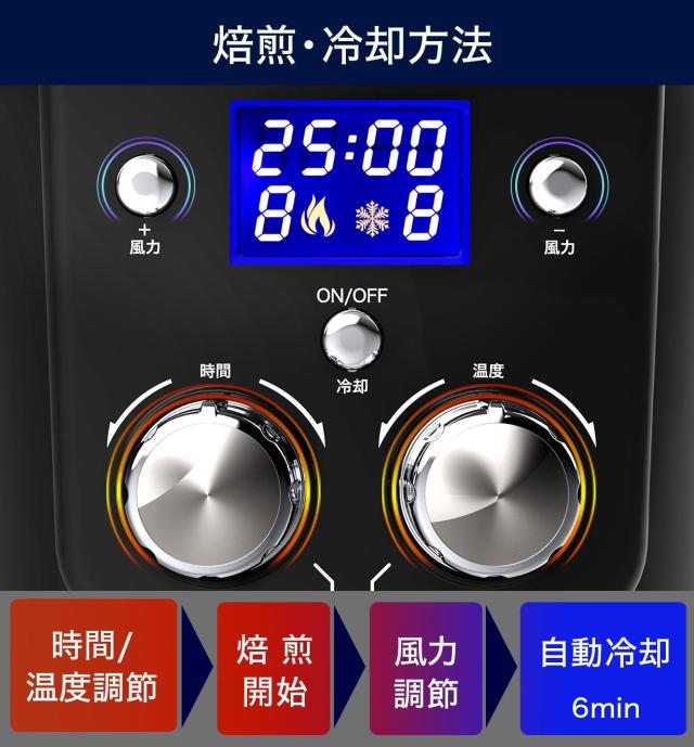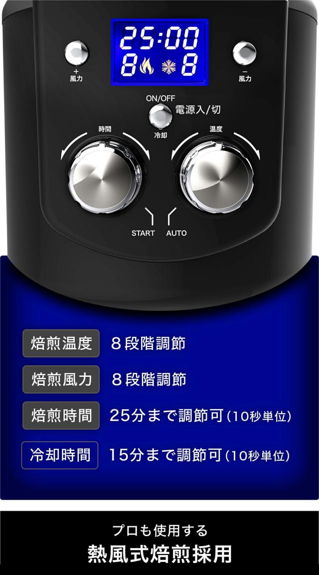 ボタンひと押しで自動で焙煎調節できちゃう機能もございます。