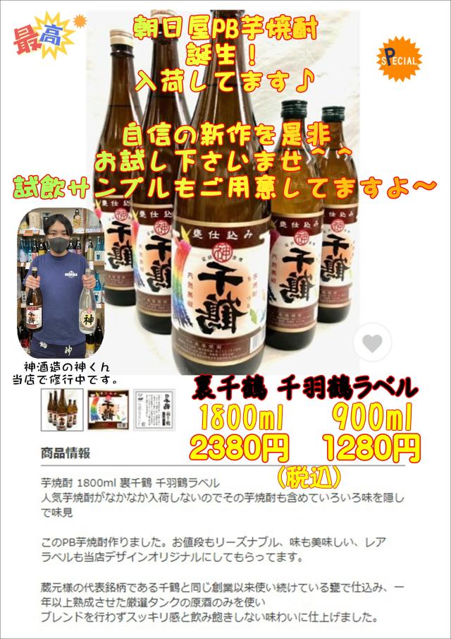 芋焼酎 裏千鶴 千羽鶴ラベル 厳選タンク1年熟成仕様 1800ml