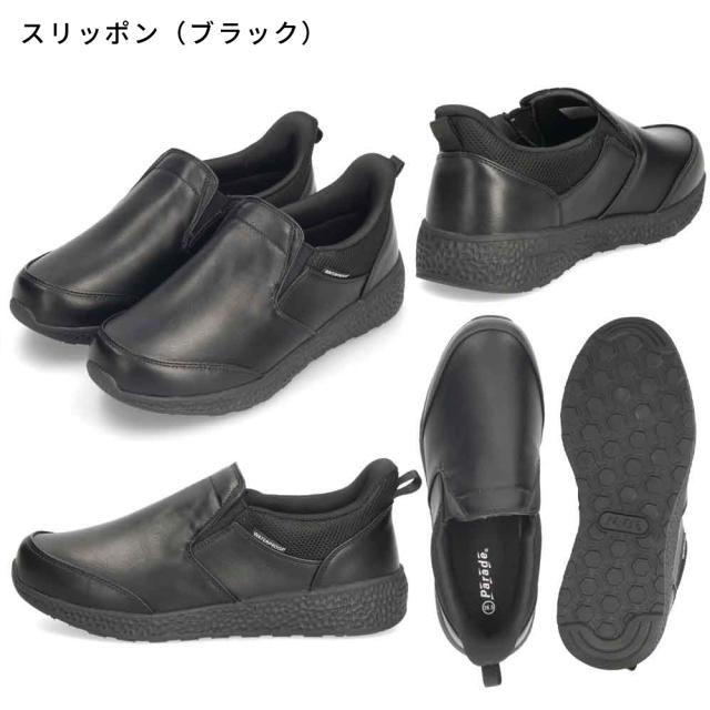 スリッポン メンズ スニーカー 防水 スリップイン 立ったまま履ける 靴 軽量 紐なし 履きやすい 歩きやすい 軽い ハンズフリー 黒 楽すぽっ Parade 985831