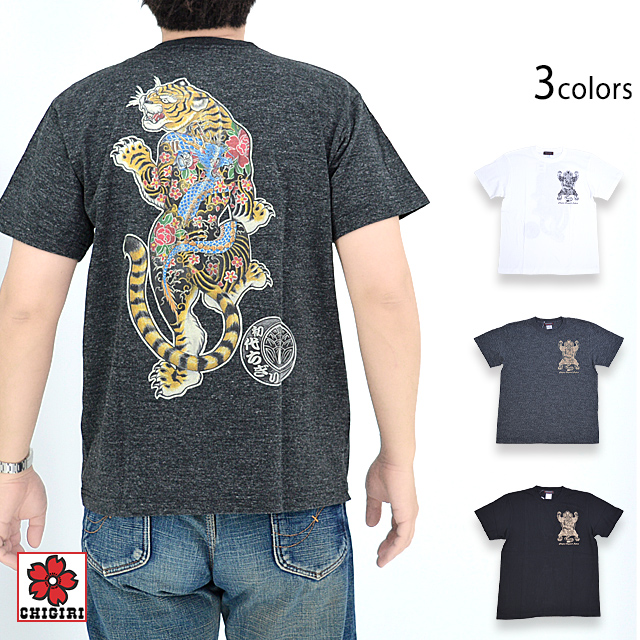 虎インクジェット半袖Tシャツ CHIGIRI CHS55-591 ちぎり チギリ 和柄 和風 トラ 刺青