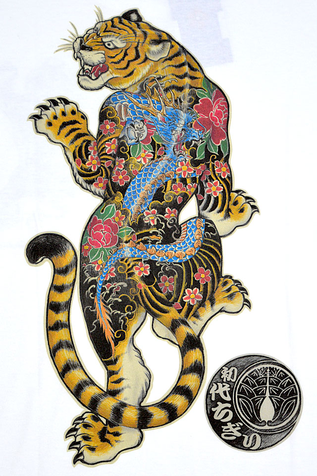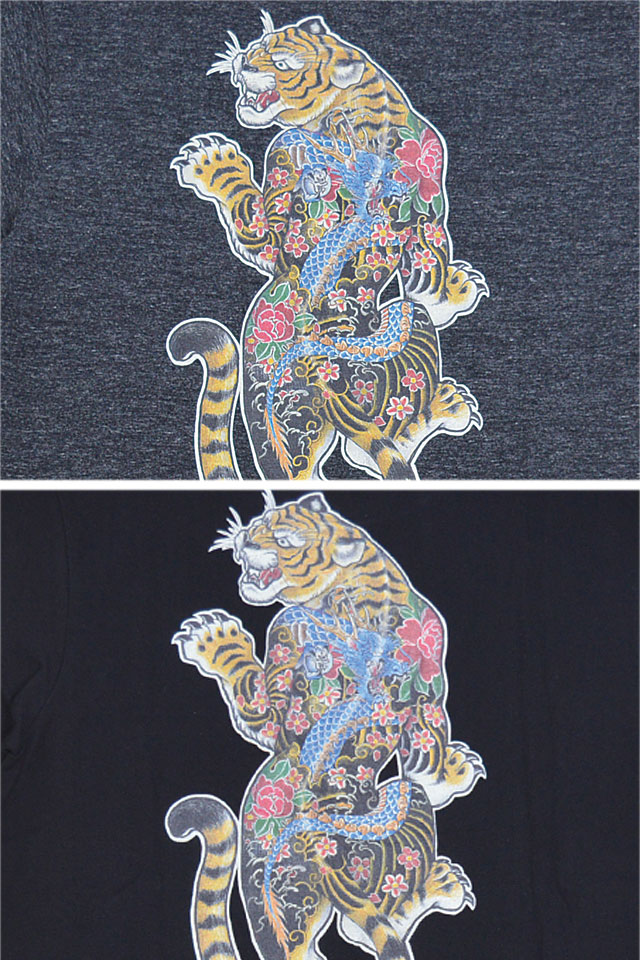 背中にタトゥーが彫り込まれた虎をモチーフの主役に採用した半袖Tシャツです。