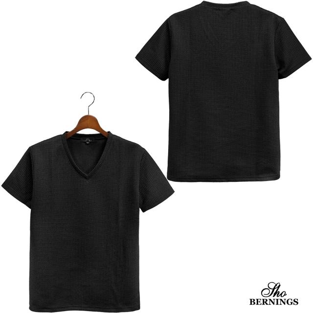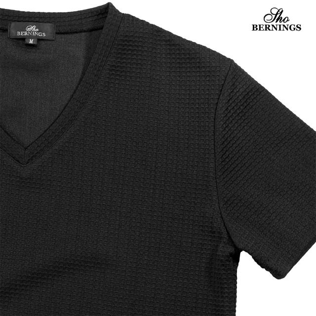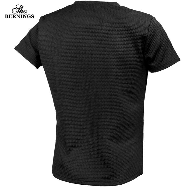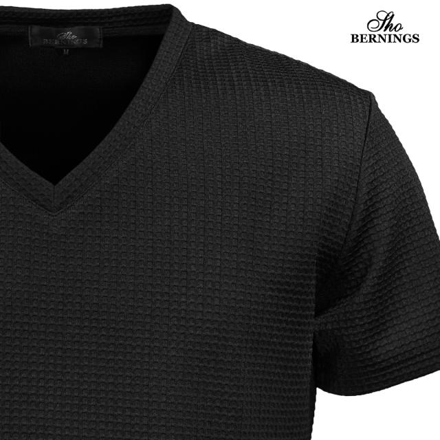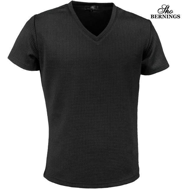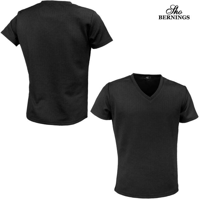 Tシャツ 半袖 Vネック ふくれワッフル メンズ シンプル 無地 mens ファッション おしゃれ(ブラック黒) 342042