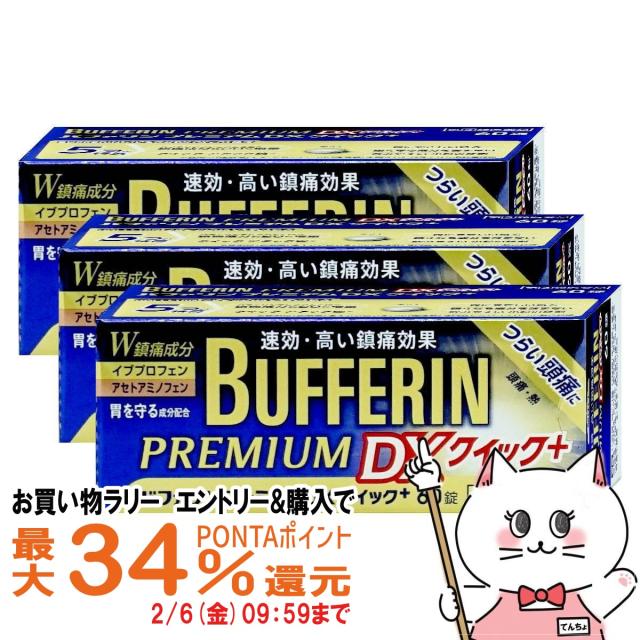 【お買い物ラリー 最大34%還元】【指定第2類医薬品】[セット]バファリンプレミアムDX クイックプラス 60錠×3(セルフメディケーション税制対象)[頭痛・痛み止め][ライオン株式会社][送料無料](6045505-set2)