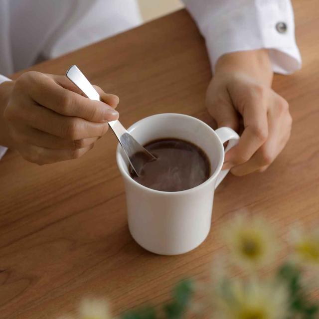 高さが14.8cmのマグカップに入れた時に小さすぎず、大きすぎないサイズ感のスプーンです。