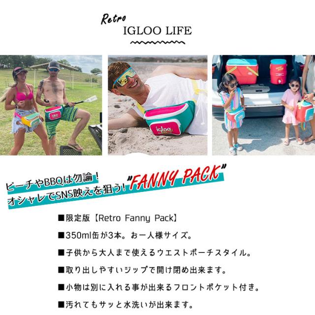 イグルー クーラーバッグ ファニーパック レトロ ウエストポーチ クーラーBOX クーラーバッグ テントトップ おしゃれ アウトドア キャンプ 送料無料 保冷バッグ 防災用品 運動会 ピクニック BBQ 海 ビーチ 山 手軽 使いやすいサイズ ミニサイズ IGLOO RETRO FUNNY PACK THROWBACK