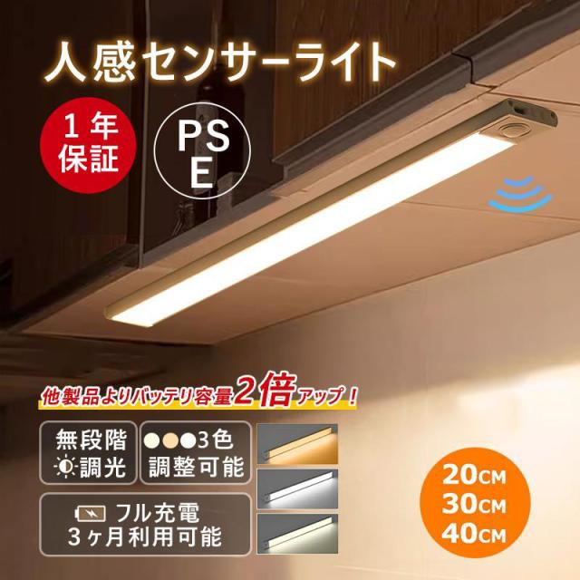 人感センサーライト Type-C 充電式 LEDセンサーライト 20cm 30cm 40cm 3色調整可能 調光調色 マグネット 9mm超薄型 足元灯 屋内 階段 玄関 高輝度 防災グッズ PSE認証済み