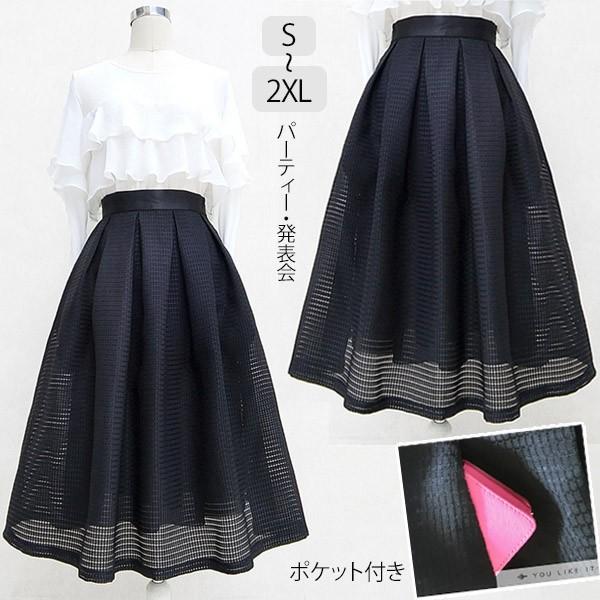 【レビュー投稿で+5%還元】スカート ひざ下 ブラック レース ポケット付き エレガント きれいめ 裏地付 ふんわり膨らむ フレアスカート パラソルスカート アンブレラスカート 演奏会 ドレス 衣装 コーラス ピアノ 発表会 ステージ 合唱 S M L XL 2XL