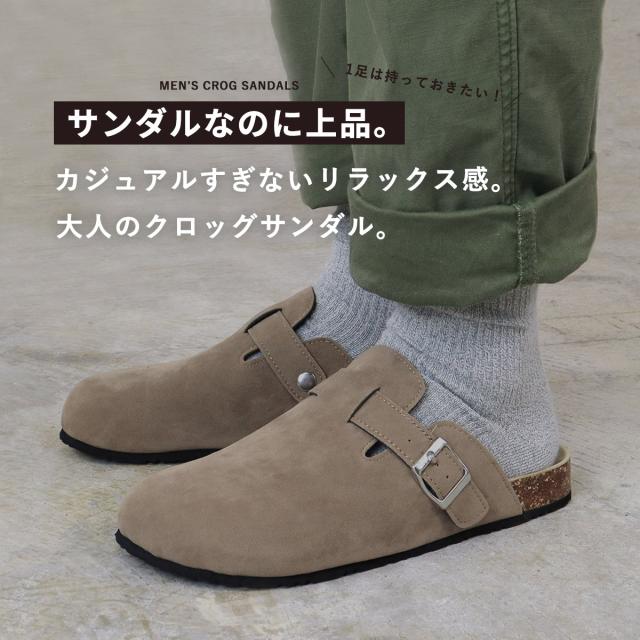 クロッグサンダル サボ メンズ ラウンドトゥ 疲れにくい 軽量 楽 合皮 スエード 1.5cmヒール No.2413 25cm-27.5cm 黒 サンエープラス
