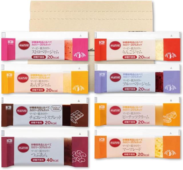 マービー 低カロリー ジャム スティック 全8種(ストロベリー/ブルーベリー/りんご/チョコレート/あんず/マーマレード/つぶあん/ピーナッツ)各1本 お試しセット PSJBOX 低糖質ジャム 低カロリージャム 個包装 小分け 砂糖不使用 使い切り