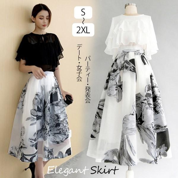 【商品名】スカート ひざ下 花柄 エレガント きれいめ 裏地付 ふんわり膨らむ フレアスカート パラソルスカート アンブレラスカート 女子会 デート フォーマル 演奏会 ドレス 衣装 コーラス ピアノ 発表会 ステージ 合唱 大人 春夏 秋 洗える S M L XL 2XL dm194t2t2l9