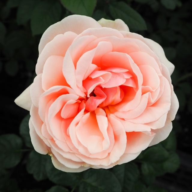 透明感のあるサーモンピンクで剣咲きからロゼット咲きへと変化する、アンティークな雰囲気のバラ。