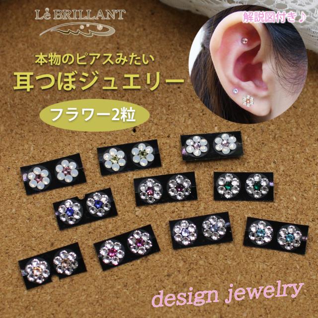 耳つぼジュエリー プチフラワー 2粒 お試し 解説図付き 選べるカラー 耳ツボジュエリー チタン粒 金粒 耳つぼダイエット 耳ツボ チタンアクセサリー ダイエット シール 耳つぼピアス 耳つぼアクセサリー 結婚式 ブライダル 肩こり 小顔 リフトアップ