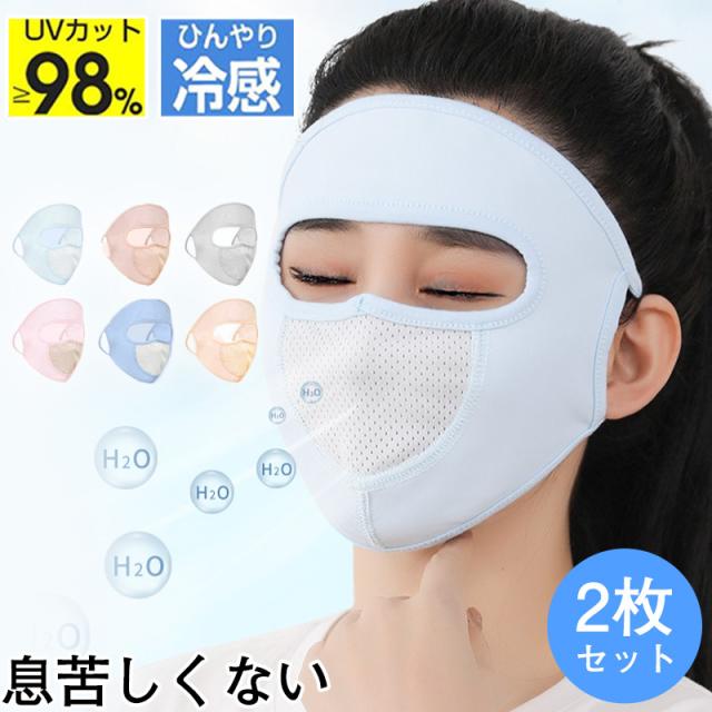 フェイスカバー フェイスマスク 2枚セット 冷感素材 uvカット 日よけ 紫外線対策 通気性 涼しい 薄手 ランニング 自転車 バイク スポー
