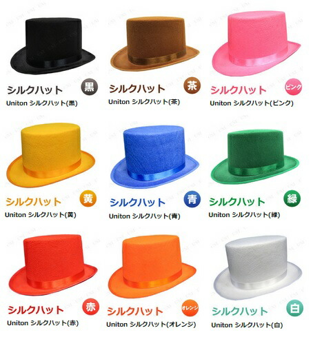 Uniton シルクハット (黒/茶色/ピンク/オレンジ/黄色/緑/赤/青/白)