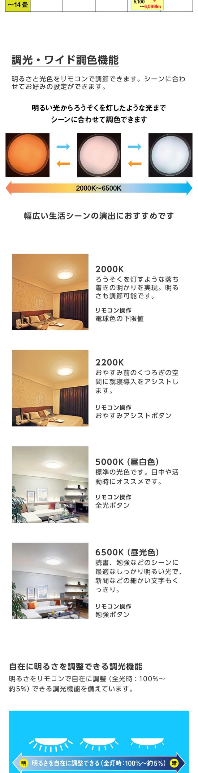 * 調光/調色:連続調光(約5%〜100%)/昼光色6500K〜電球色2000K