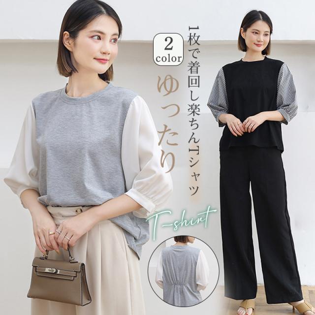Tシャツ レディース 春 夏 トップス 半袖 tシャツ カットソー プルオーバー インナー ゆったり UVカット 大人 シルエット