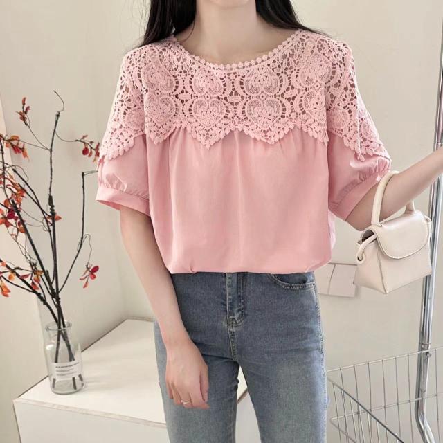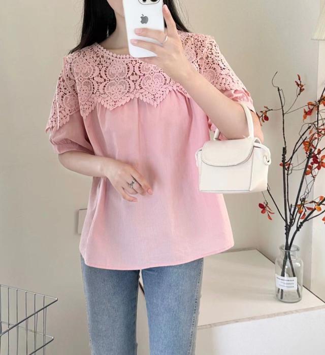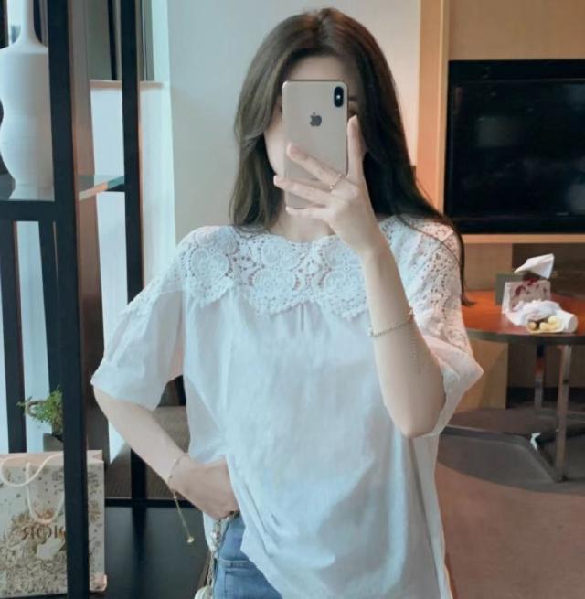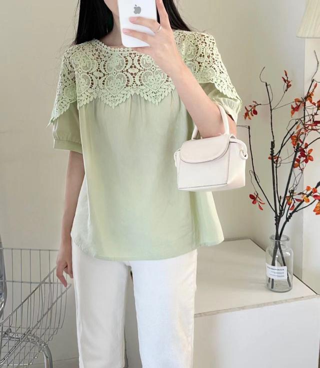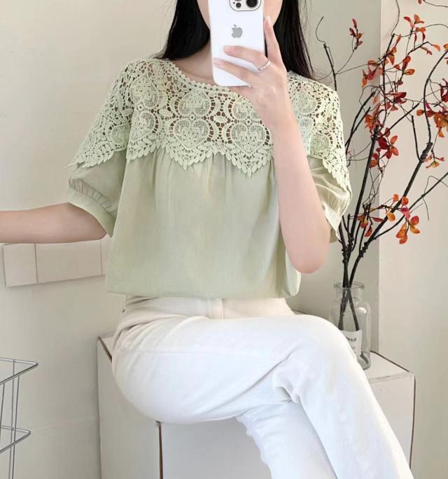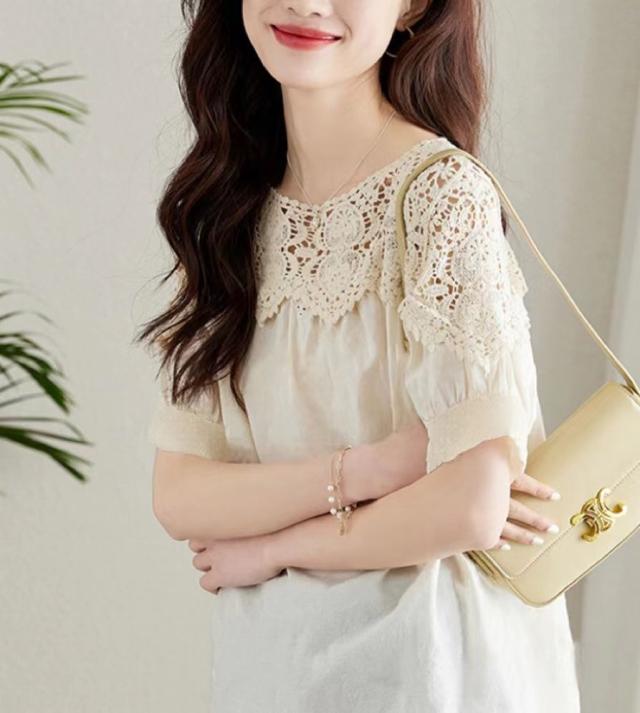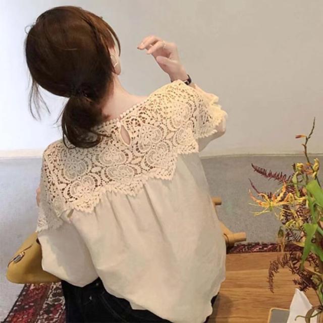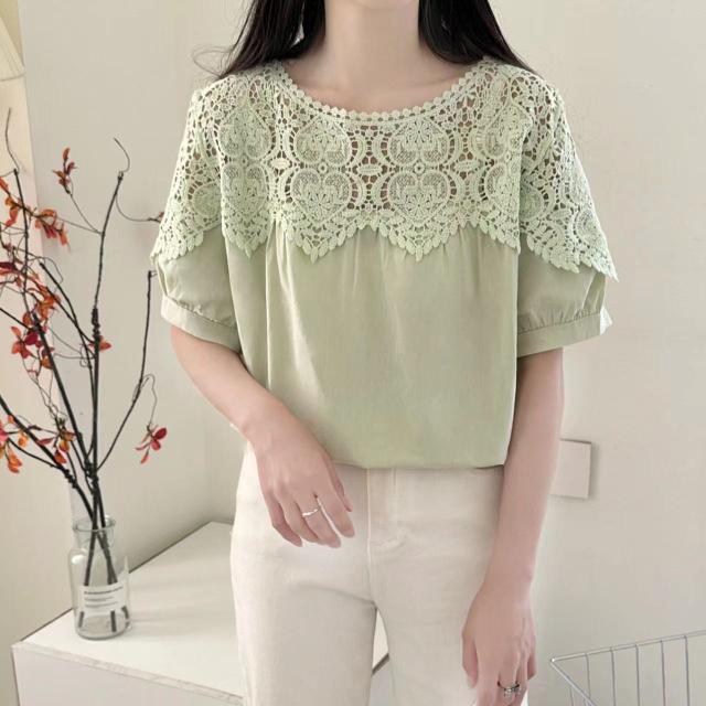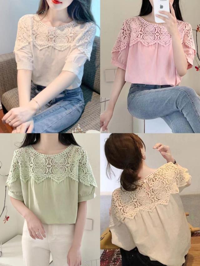 送料無料 レディース刺繍 カットソー Tシャツ 綿 透かし編み 春夏 チュニック ブラウス トップス ロングTシャツ ゆったり レース 無地 透け感 切り替え カジュアル