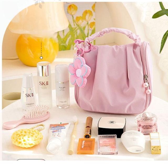 送料無料 トラベルポーチ 大容量 手提げ・フック付 化粧ポーチ メイクバッグ キーホルダー付き 吊り下げ 小物入れ 可愛い マチあり 持ち運び便利 収納 自立 整理 普段使い 旅行 アウトドア