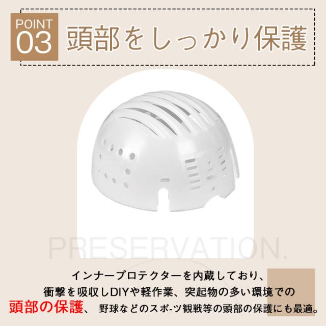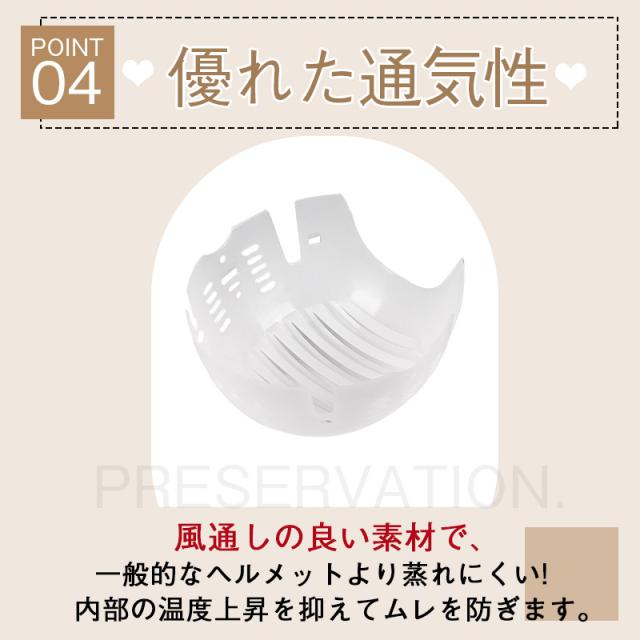 - 風通しの良い素材で、一般的なヘルメットより蒸れにくい
